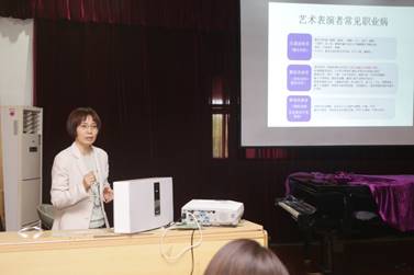 接下来,由协和医院杨朝辉教授讲解“艺术表演职业病与防护”,指出了颈肩劳损、急性扭伤等多种艺术表演中存在的伤病,及其处理和康复的方法,得到在场师生的共鸣与点赞。讲解结束,艺教中心学生党支部的谢运心同学以舞蹈《春枝》,展现肢体动作的灵活与柔美。
