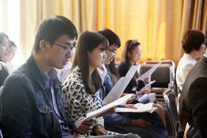 首先,由协和医院耳鼻喉科副教授张小萌带来嗓音保健知识讲座,张教授从发音原理、嗓音保健等几个方面讲述科学用嗓的原理和方法。随后艺教中心合唱团成员周果子与刘子祺从实践的角度,运用歌曲《花非花》和《雪绒花》带领现场同学体验科学发声技巧。