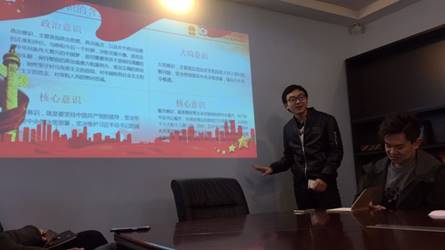 赵琳、俞炯帆、贾子威、丁婉芝等同志代表与会党员就 “四个自信”“四个意识”“四个认识”及“四个统一”进行了学习讨论。同志们结合自身体会踊跃发言,赵琳同志表示在今后的工作中,我们要时刻以集体利益为重,紧紧围绕单位发展的主题;思想上时刻保持清醒头脑,增强四种意识,做到知忧患、知进退、知本分、知责任,自觉在思想上政治上行动上同党中央保持高度一致。