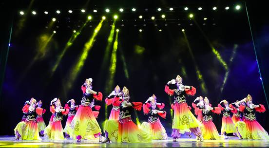 女子群舞《古扎丽古丽》,是零基础班为我们带来的一个维族舞蹈,展现出维族女子的热情洋溢,肆意洒脱。