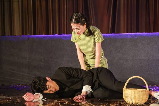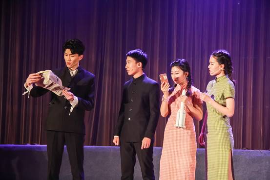 当周爱国偶然穿越回民国时代,遇到了由16级新闻学院杨懿晨饰演的徐淑珍、17级新闻学院段心玫饰演的静怡、17级光电学院张晓航饰演的王文学三人时,全戏进入了最具笑点的捧腹桥段,现场爆笑连连、掌声不断,周爱国的穿越奇遇和新旧时代的激烈碰撞让大家啼笑皆非。