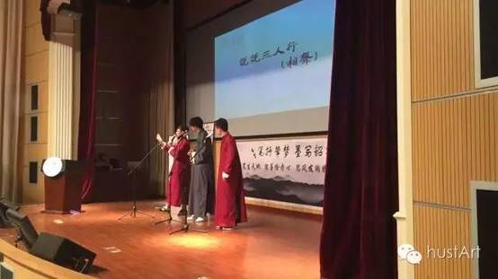2015-2016学年度华中科技大学本科生十佳主题团会答辩会在机械学院报告厅举行。在比赛现场,艺术教育中心的同学们用艺术人生的形式,讲述了这一年的团会心路,用艺术点亮人生。将表演,舞蹈与器乐结合,...